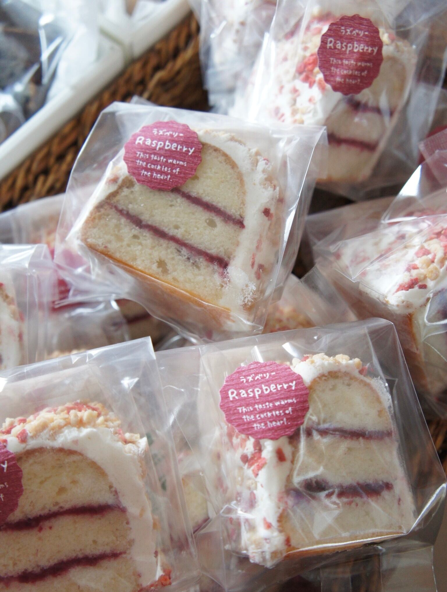 卵白を使った口溶けよい生地にラズベリージャムをサンドしました。バタークリームは大豆バターを使いさっぱりに仕上げアーモンドのカリカリとした食感もアクセントになってます。